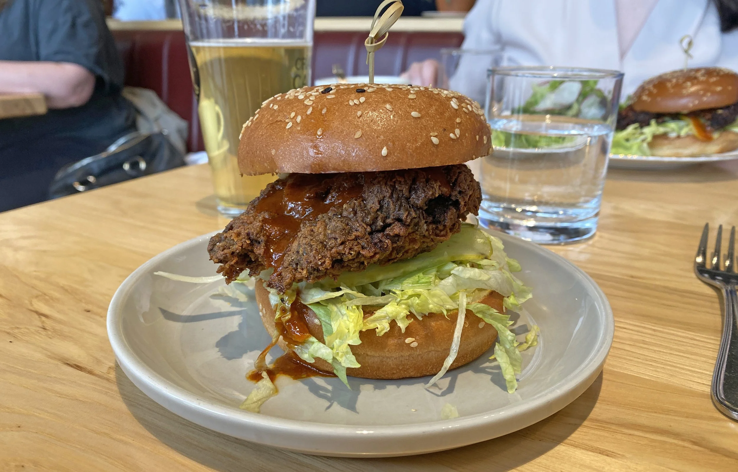 The chicken was really crispy and juicy but a couple spots were a bit dry and the batter was almost burnt but barely noticeable